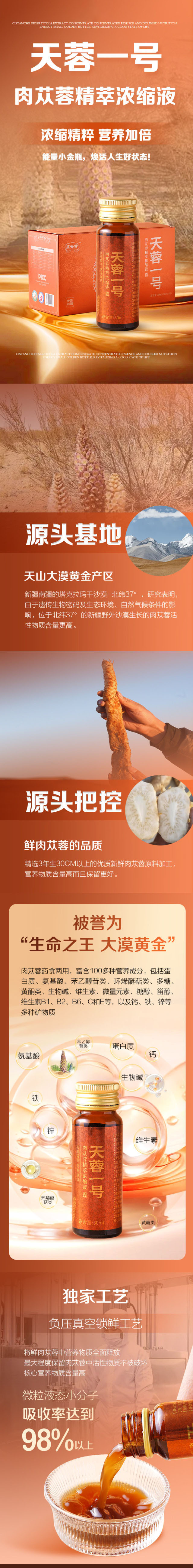 首页 >> 天荣一号·肉苁蓉精萃浓缩液 300ml(30ml*10)